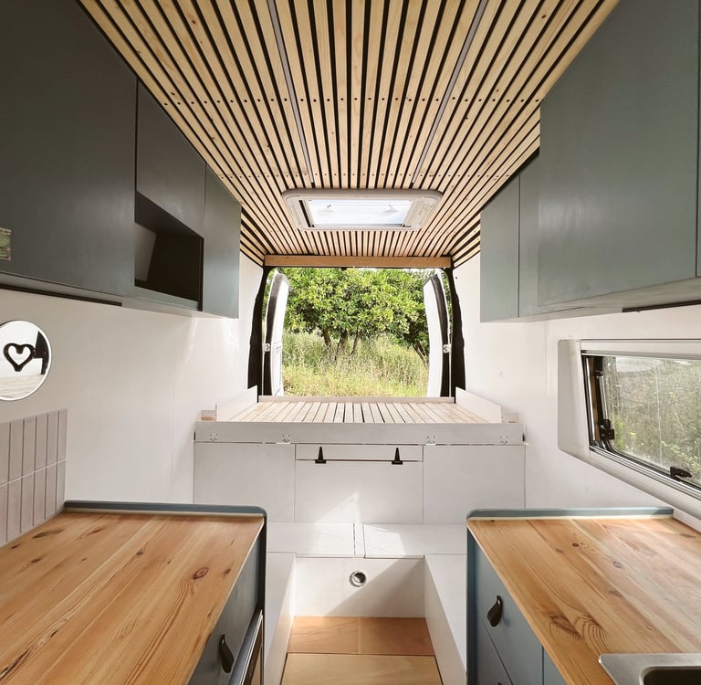 Vans grandes (Sprinters, Ducatos, Transit LWB) oferecem mais espaço e conforto, permitindo mais amenidades como banheiro e cama fixa. Porém, são mais difíceis de estacionar e custam mais para dirigir e manter.